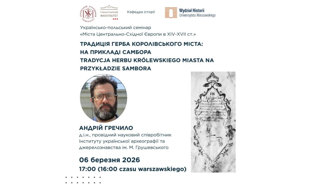 Історичний факультет Варшавського університету та гуманітарний факультет Українського католицького університету запрошують на чергове засідання українсько-польського семінару «Міста Центрально-Східної Європи в XIV-XVII ст.».